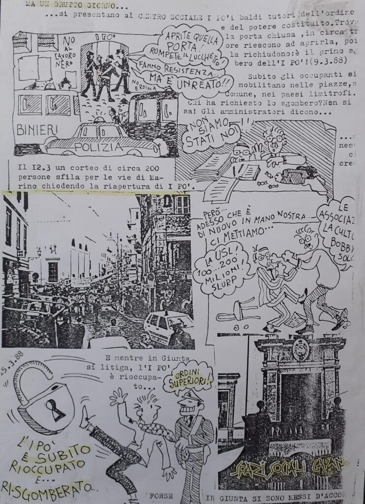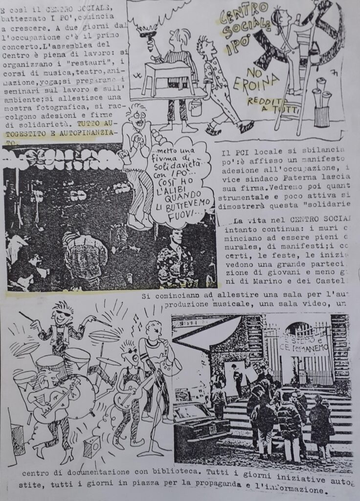 Il 27 novembre 1987 sono occupati a Marino i locali dell’ex-GIL in via del Giardino Vecchio, di proprietà regionale e gestione comunale. Gli occupanti, giovani e meno giovani dei Castelli ne fanno un centro sociale autogestito e autofinanziamento.